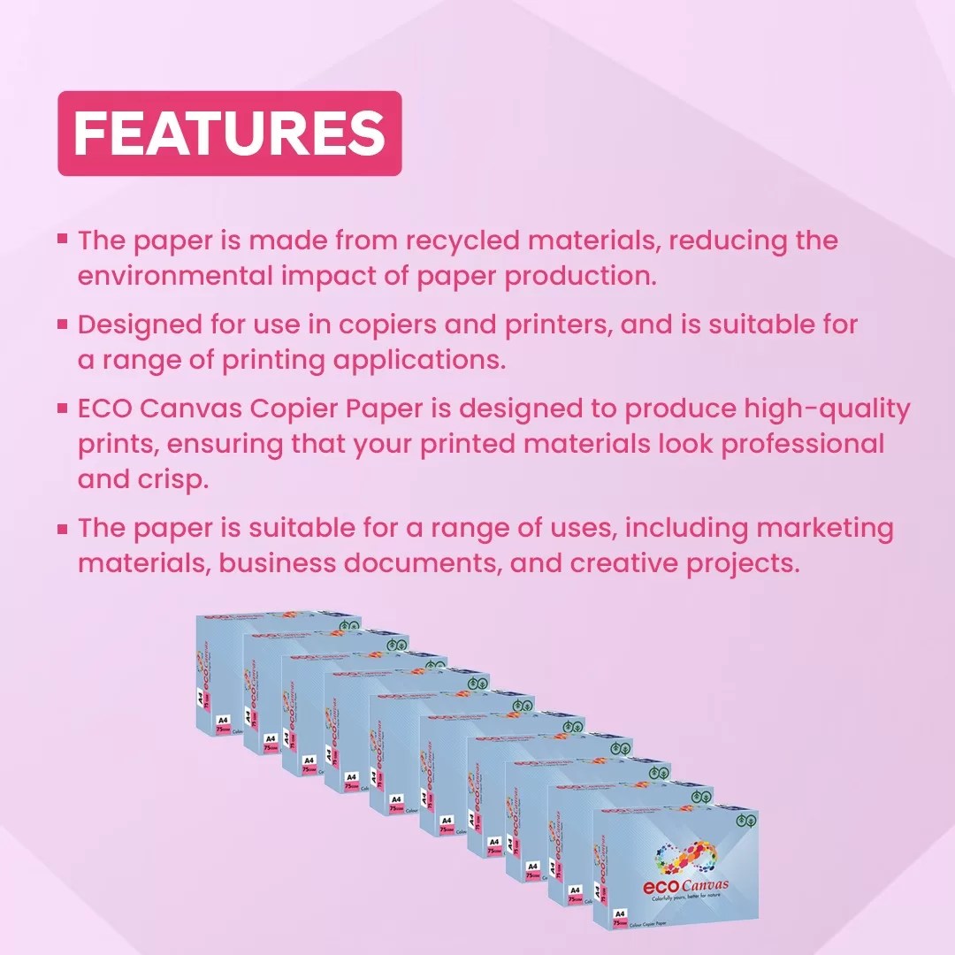 - ECO Canvas A4 Size Copier Paper Pink Suitable for any job on office printer, inkjet and LaserJet