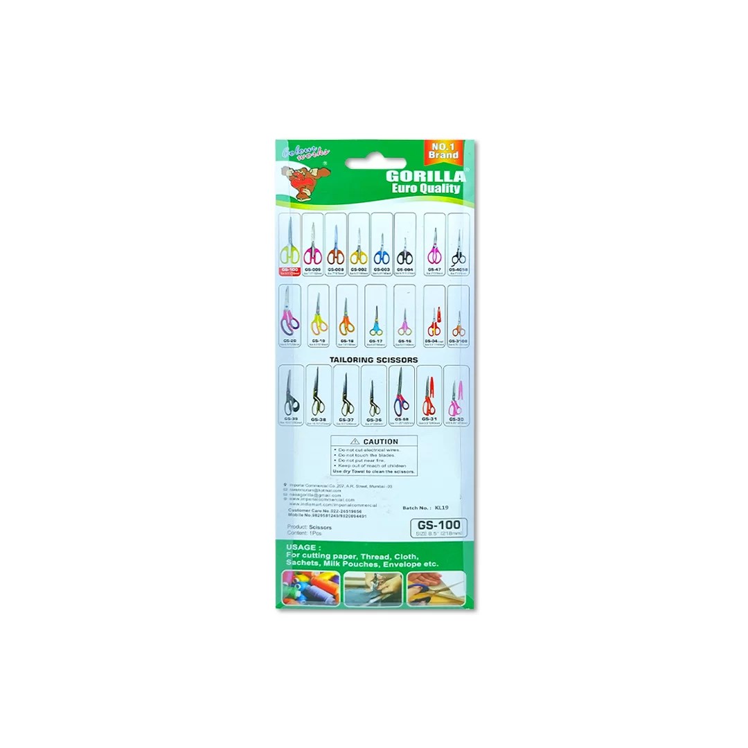 Gorilla Scissor 100Â is an extra sharp, high quality, made of stainless steel, craft scissor. Ideal for School children / kids. It has a blade cover.